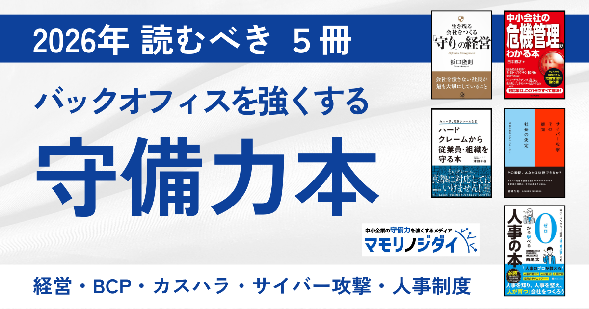 カテゴリー最新記事 コンプラ・ガバナンス #マモリノジダイ編集部 #2025 #2026 #書籍 コンプライアンス・ガバナンス 【新年度までに読みたい5冊】マモリノジダイ編集部 厳選!「企業の守備力を上げる本」 コーポレートガバナンス 【企業向け】誹謗中傷に対する開示請求とは?費用・手続き・期間をわかりやすく解説 コンプライアンス・ガバナンス 従業員エンゲージメントを向上させるには?中小企業が取り組むべき施策・事例を徹底解説 もっと見る 人事・労務 健康経営 中小企業のための「健康経営」セルフチェック30問!ブライト500への第一歩 人事・労務 【512社の企業が回答】なぜこの会社で働き続けるのか?辞める理由より辞めない理由を調査して分かった社員の本音 採用 【面接官の基本】聞いてはいけないNG質問ランキング20 発言リスク&うっかり度で評価 もっと見る 情報・IT 情報・IT 【中小企業向け】デジタルフォレンジックとは?費用や調査のやり方を簡単に解説 情報・IT AIセキュリティとは?抱える問題やリスク、実施すべき対策を解説 情報・IT マルウェア対策で重要なことは?中小企業が知るべき感染例・予防策・初動対応も解説 もっと見る 経営全般 経営戦略 事業承継とは?中小企業向け税制・補助金・M&Aをわかりやすく解説 経営戦略 エクイティとは?ビジネスにおける意味やダイバーシティとの関係をわかりやすく解説 経営戦略 ストックオプションとは?仕組み・種類・税制・導入ステップまでやさしく解説 もっと見る