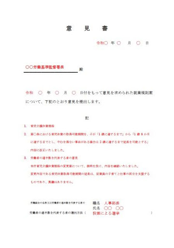 就業規則を作成または変更する際は、労働者の過半数を代表する者(労働組合がある場合はその労働組合)の意見を聴取し、意見書を作成することが義務付けられています。