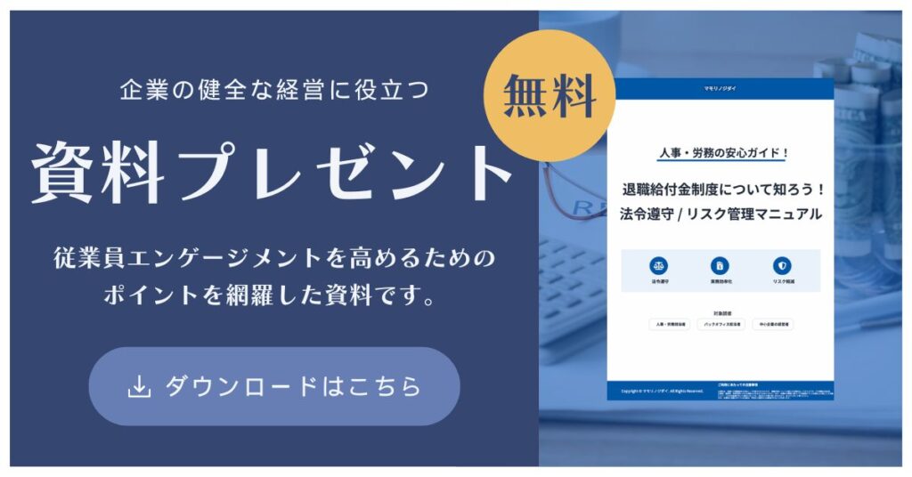 企業の健全な経営に不可欠な「退職給付金制度」。法令違反のリスクを回避し、従業員エンゲージメントを高めるためのポイントを網羅した資料を今すぐダウンロードしませんか?