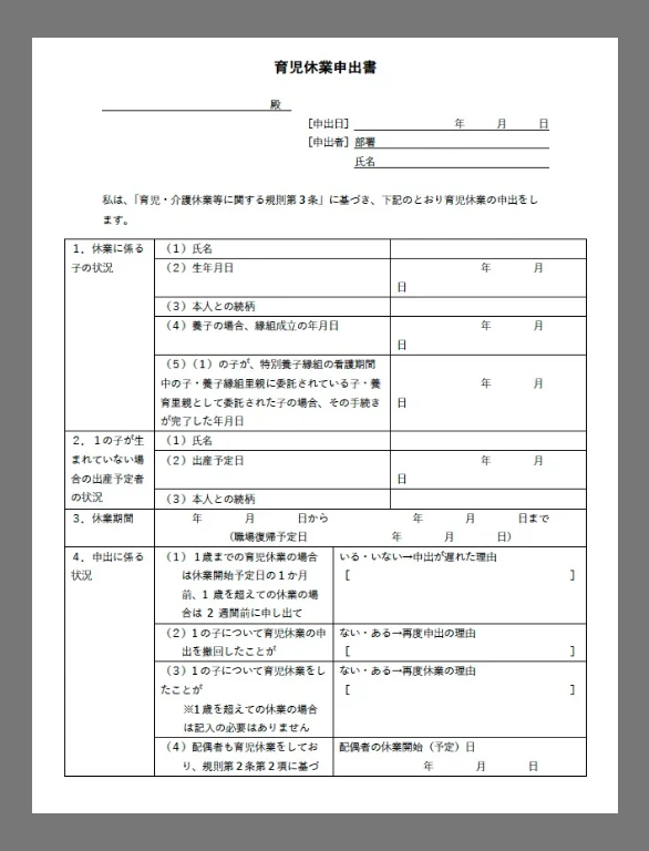 参考記事:育児休業申出書テンプレート