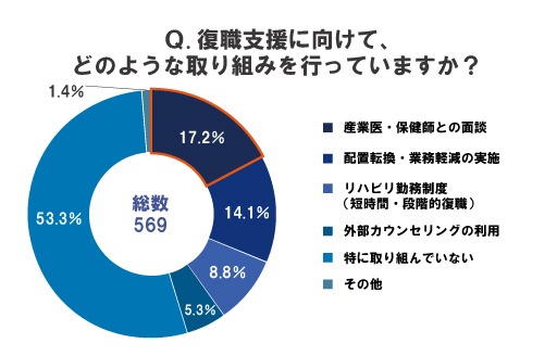など、コミュニケーションを中心とした対応が見られましたが、制度的な仕組み化や復職のための段階的サポートまでは踏み込めていない企業が多いことが分かります。