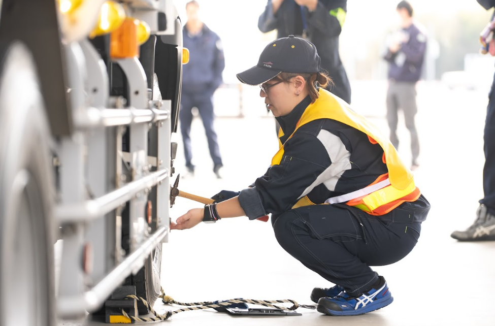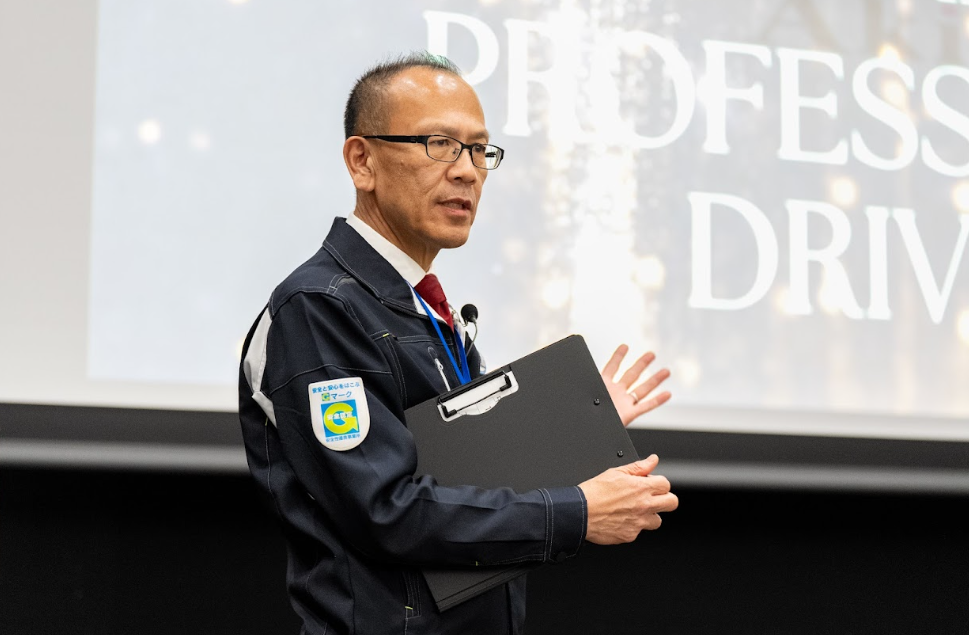 Hさんは、自社運転技術大会(運転操作、車両点検・異常発見の力、道路ルールの知識を競う社内イベント)の中型車部門で、ベテランの男性陣を抑え見事に優勝しました。