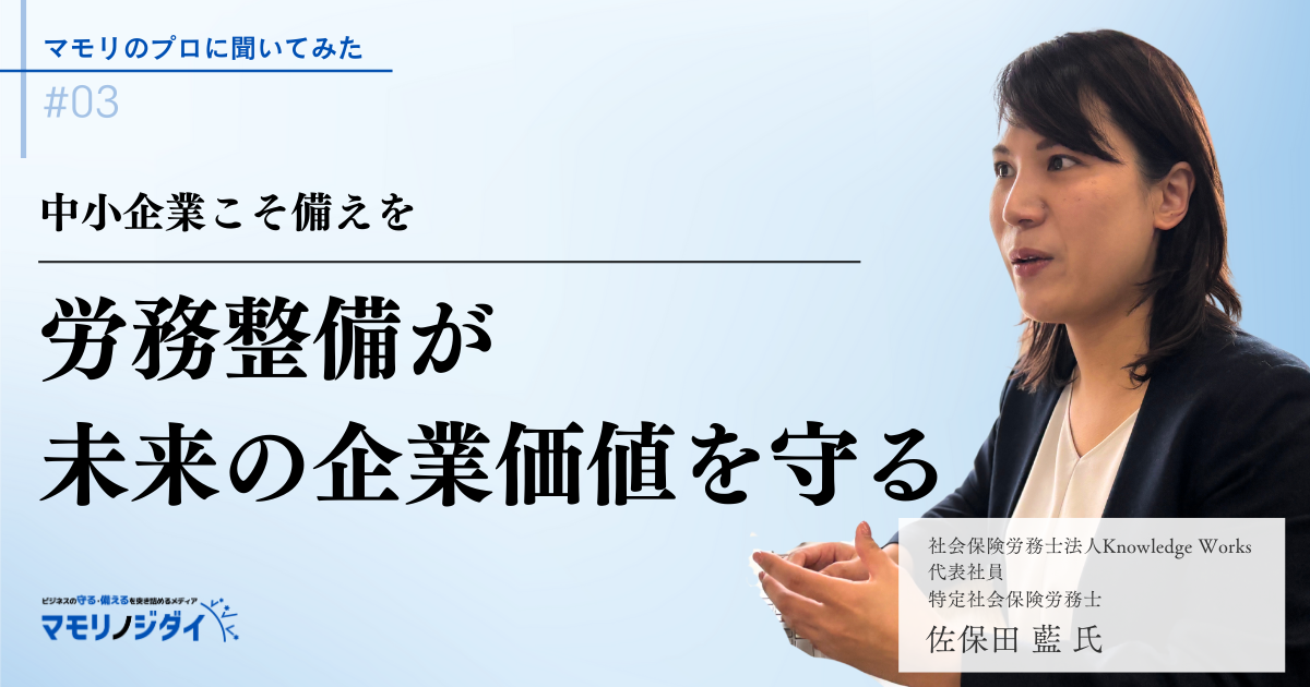 今回は、社会保険労務士法人Knowledge Works代表社員で特定社会保険労務士の佐保田藍氏に、事業承継やM&Aの場面で表面化しやすい「労務整備の遅れ」について、中小企業が抱える具体的な課題とその対策を伺いました。