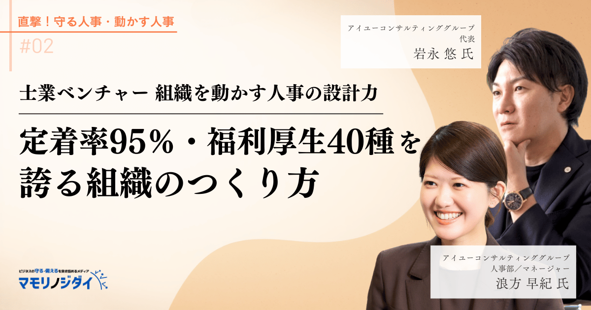 定着率95%・福利厚生40種を誇る組織のつくり方中小企業のユニークな人事施策を取材する「直撃!守る人事・動かす人事」。今回は士業で唯一、Great Place To Work(GPTW)(※世界170カ国で「働きがい」を研究・支援する専門機関)に選出、定着率は驚異の95%を誇るアイユーコンサルティンググループが登場。